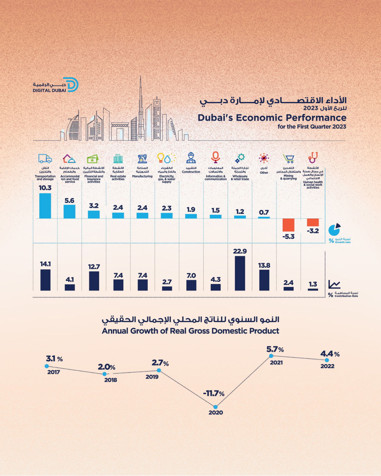 In the fast-paced landscape of global economics, Dubai, the city of innovation and growth, has once again proven its mettle. Dubai’s first-quarter surge in its real gross domestic product (GDP) by 2.8 percent to AED 111.3 billion ($816.7 million).