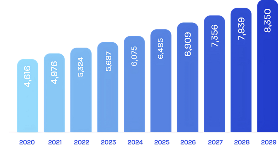 Domestic Tourism Spending Outlook worldwide from 2020 to 2029 (in Billion USD)