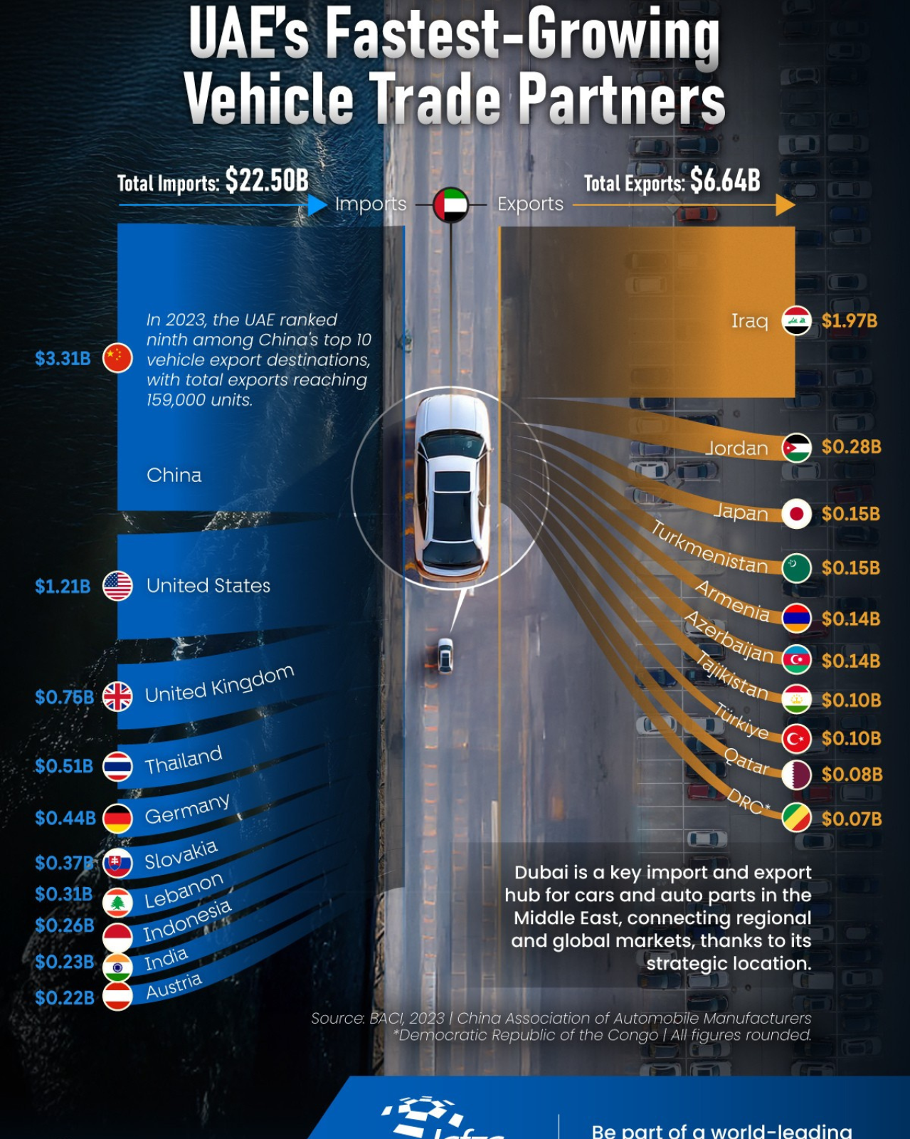 The United Arab Emirates (UAE) vehicle trade has expanded rapidly, fueled by the Jebel Ali Port its free economic zone (Jafza). But which country’s vehicle trade with the UAE are growing the most?
